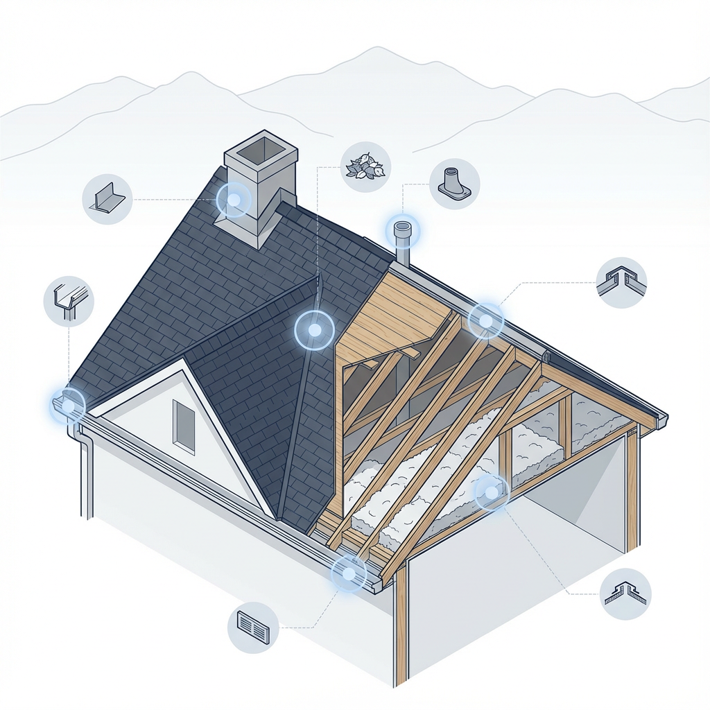 Most leaks happen where the roof meets something else. We inspect chimney flashing, plumbing vent boots, and skylight seals. We check to see if your sealant has dry-rotted under the intense mountain UV rays.